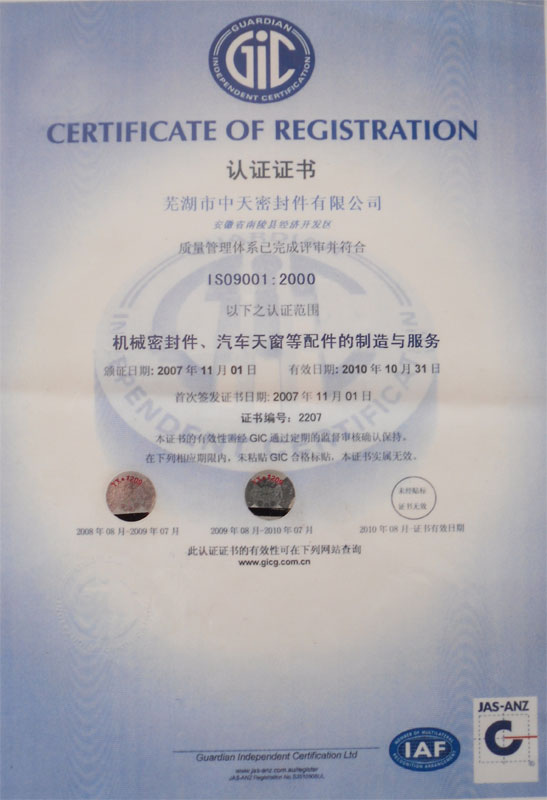 ISO9001:2000質(zhì)量管理體系認(rèn)證證書